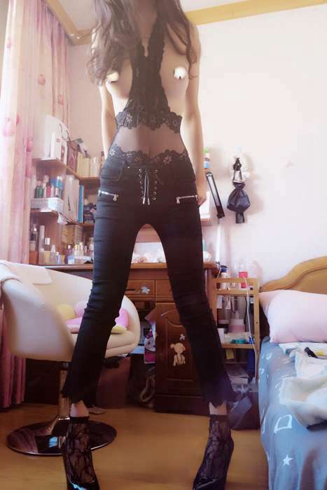 [原来是茜公举殿下写真]ID0068 黑色睡衣 [6P1V]--性感提示:长发披肩女仆装皮裤细腰拉上窗帘