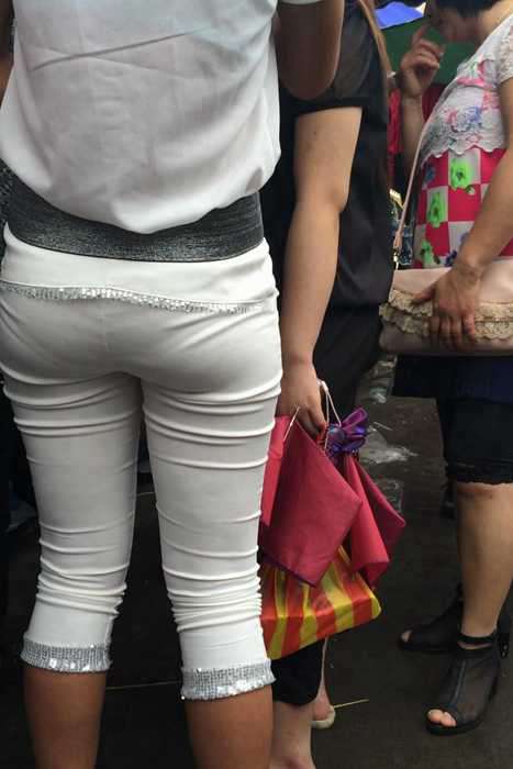 [街拍视频]00386性感的包臀紧身裤美女穿凉拖鞋逛街