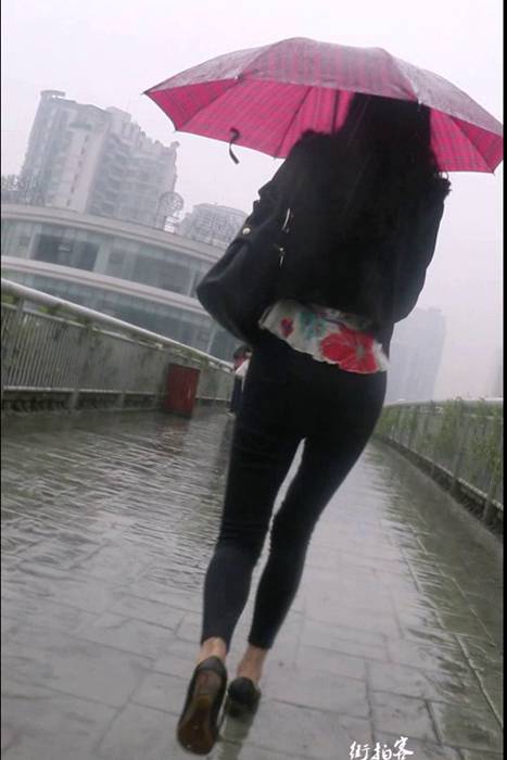 [街拍客视频]jx0055 下雨天跟拍紧身裤美高跟少妇