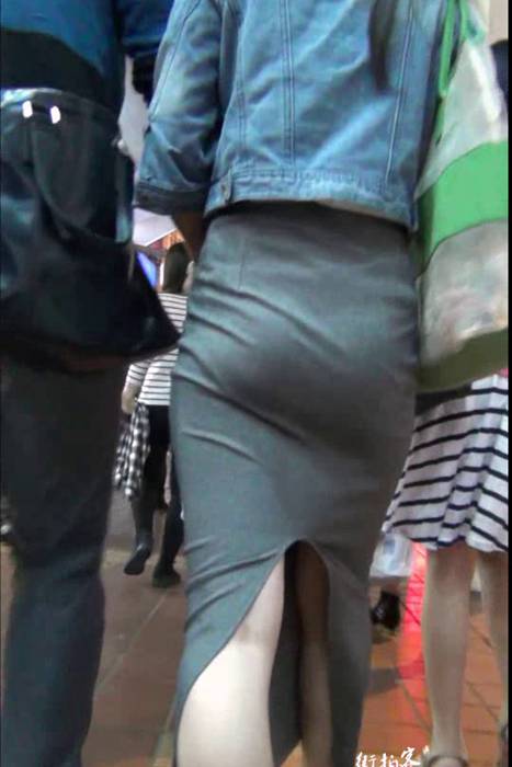 [街拍客视频]jx0577 性感紧身包臀分叉灰裙少妇